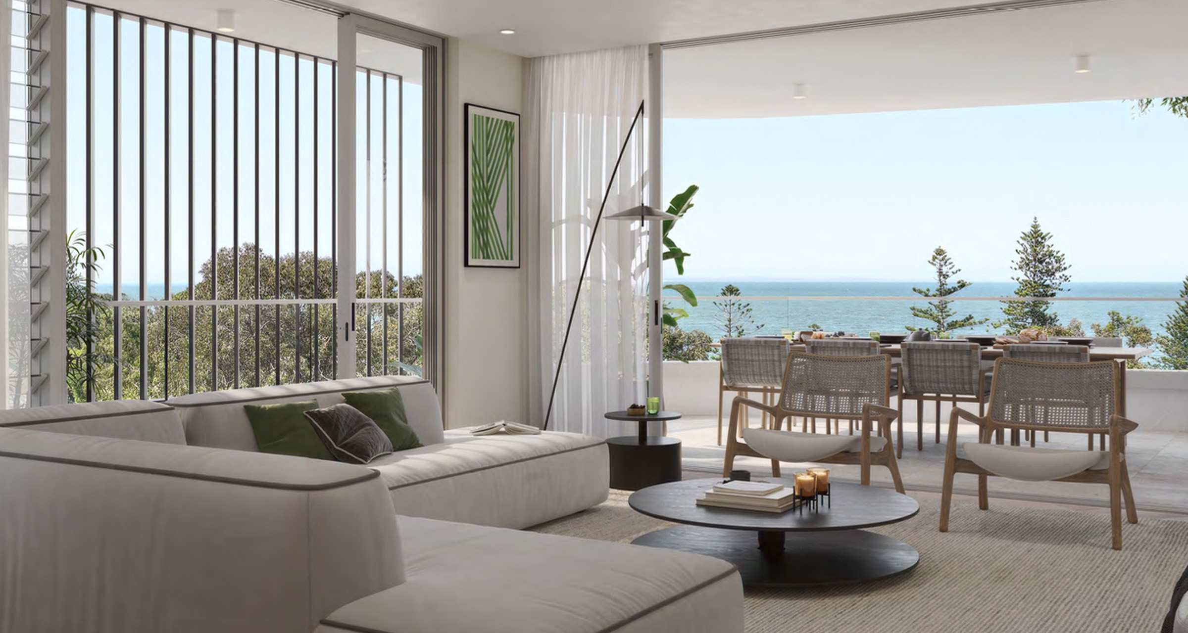 Every apartment at Horizon is meticulously designed to capture the beauty of its coastal surroundings. Expansive floor-to-ceiling glazing frames breathtaking ocean views, while open-plan layouts invite natural light and sea breezes to flow effortlessly through each space. Generous balconies become extensions of the living areas, ensuring every moment at home is enriched by the elements that make this location so extraordinary.